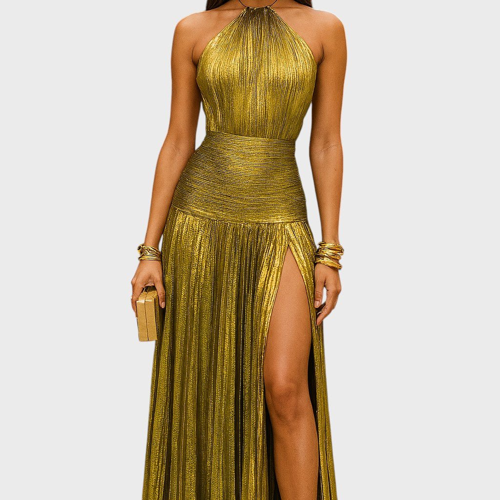 Milica - Lieknai prigludusi halter maksi suknelė