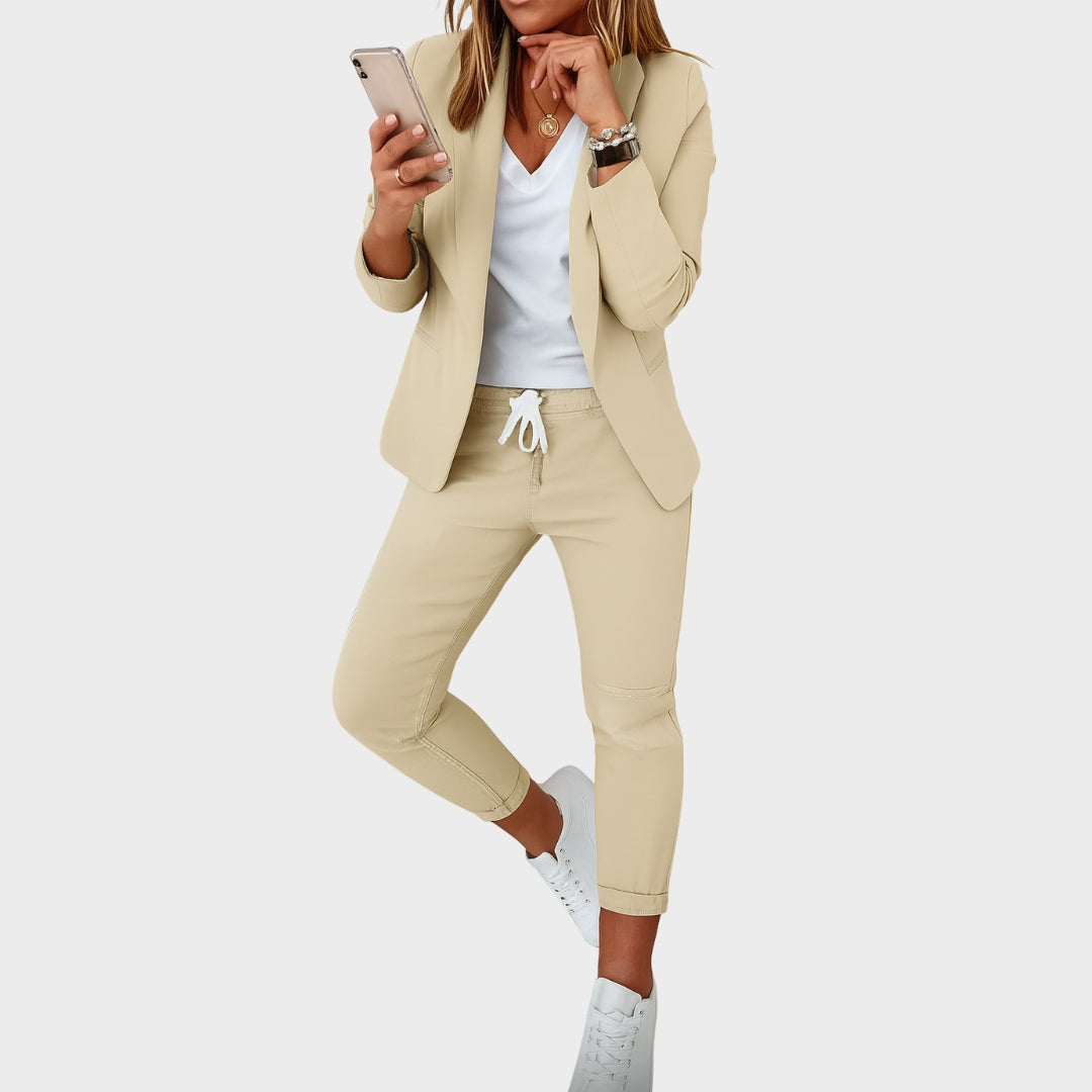 Karolina pritaikytas komplektas su minkštu bleizeriu ir kelniomis
