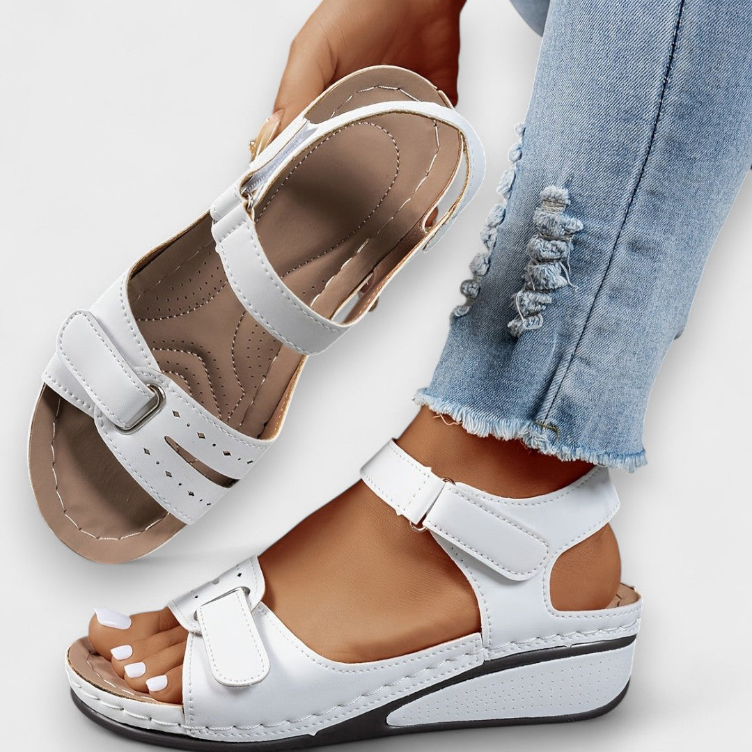 Basutės su ortopediniu padu, leidžiančiu pasididinti ūgį be jokio komforto praradimo. Modernus ir lengvas dizainas sujungia stilių bei gerą savijautą, todėl šios basutės idealiai tinka pasivaikščiojimams ir ypatingoms progoms. Lucia – tobulos basutės šiai vasarai!