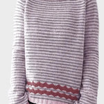 Išsiskirkite su šiuo dryžuotu ir zigzaginio rašto megztiniu